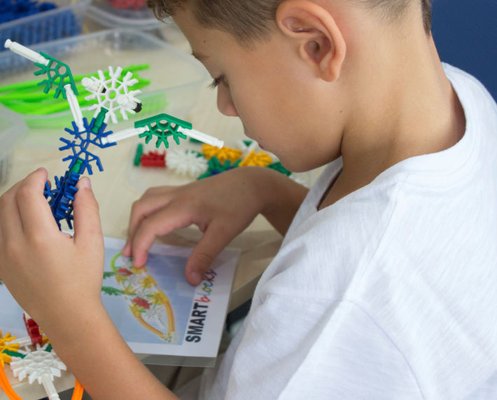 Com o SMARTblocks Em Casa, enviamos vídeos semanais para os alunos praticarem as habilidades em família utilizando materiais não-estruturados e comumente disponíveis em casa.